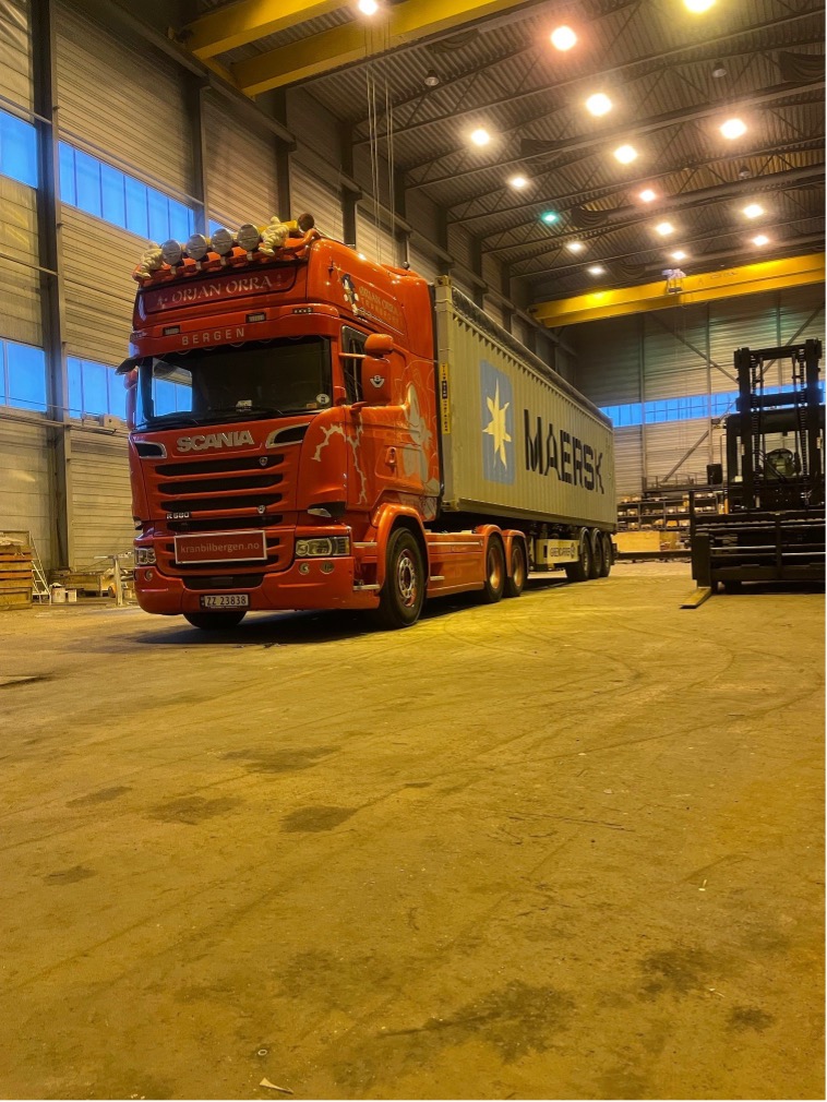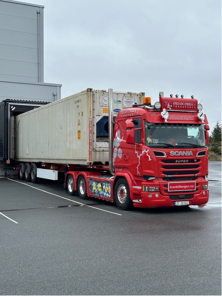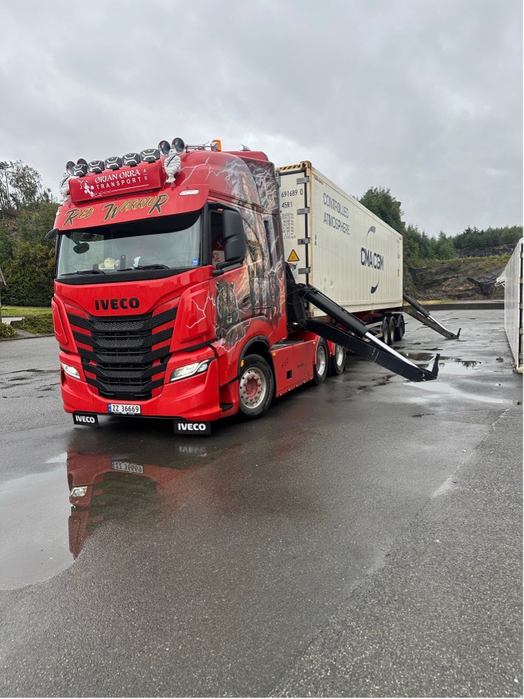 Vi har både sidelastere og chassis. Med dette har vi mulighet til å transportere containere fra 20 fot til 40 og 45 fot.